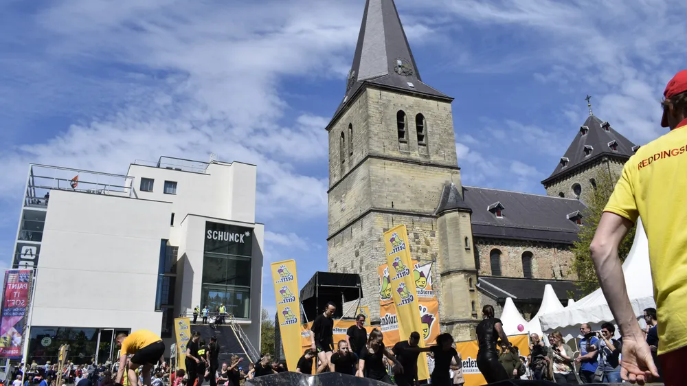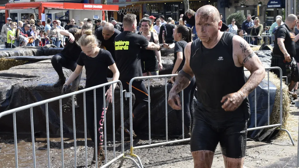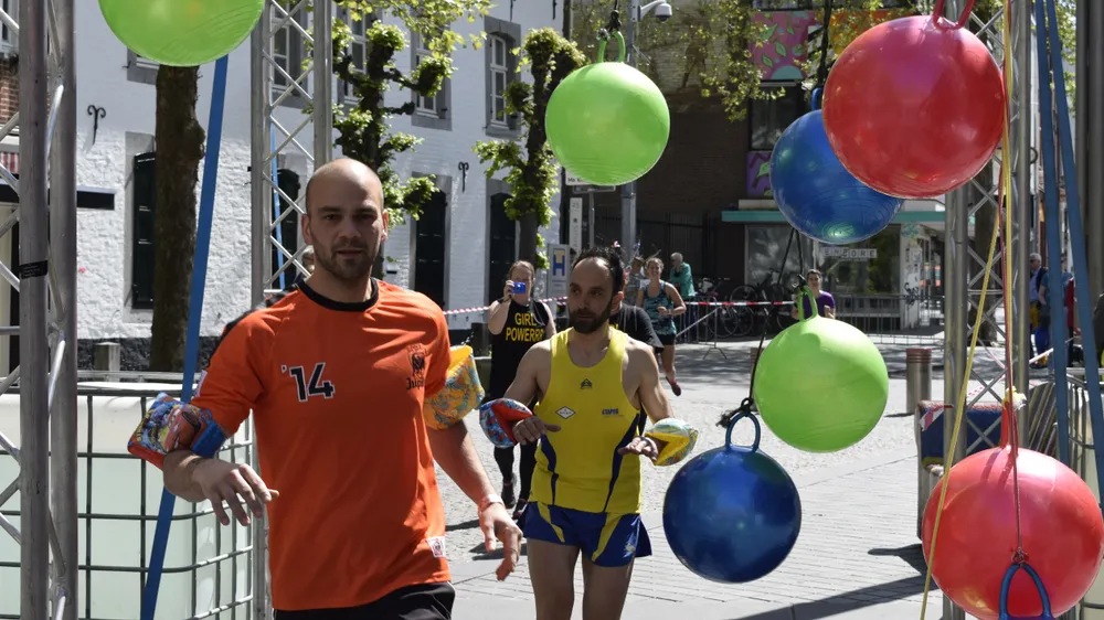 Vanmiddag stormde het in de binnenstad van Heerlen. Wat fysieke krachtsinspanning en het betere benenwerk betrof althans. Zeker niet qua weer, want de weersomstandigheden waren de ruim 400 deelnemers aan de hindernisloop door Heerlen uitermate gunstig gestemd. Een parmantig zonnetje, en de hele dag geen neerslag.