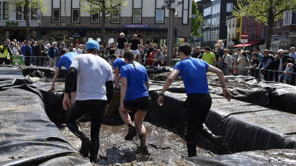 Terwijl de lange route tot aan kasteel Terworm voerde waar een gedeelte van het parcours door de slotgracht voerde, waren voornamelijk in het centrum van Heerlen tal van hindernissen opgeworpen. Daarbij waren vooral de modderbaden en de waterglijbaan op het Pancratiusplein bij het publiek in trek, dat de strapatsen van de deelnemers onder het genot van een hapje en drankje vanaf de drukbezette en in de zon badende terrassen genoegzaam kon gadeslaan.